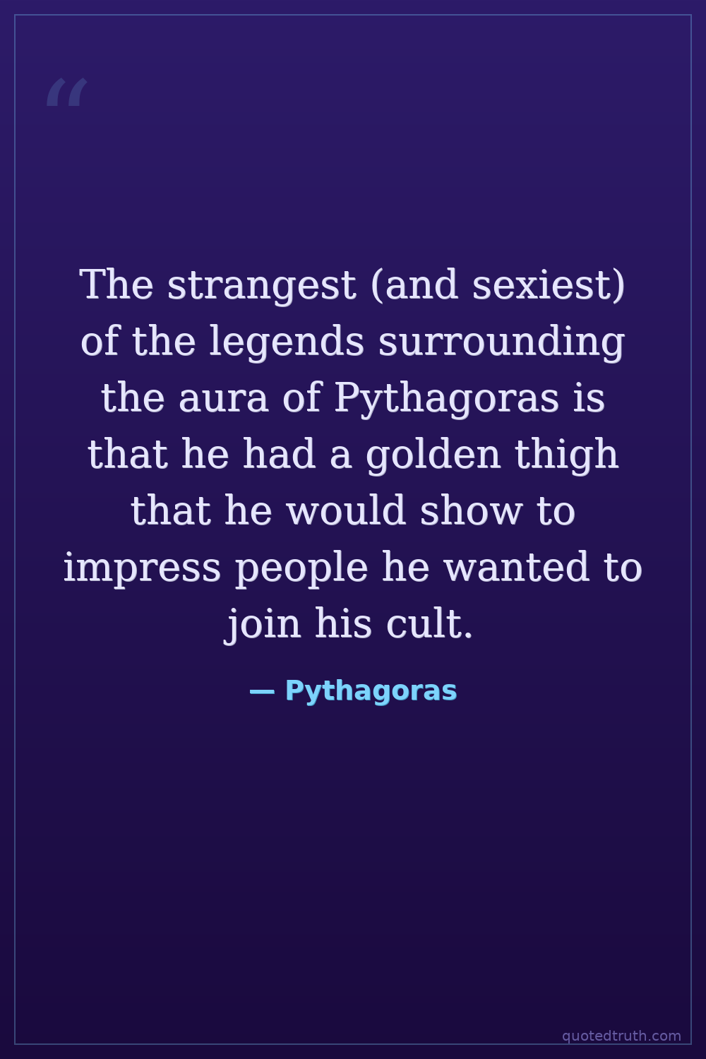 The strangest (and sexiest) of the legends surrounding the aura of Pythagoras is that he had a golden thigh that he would show to impress people he wanted to join his cult.