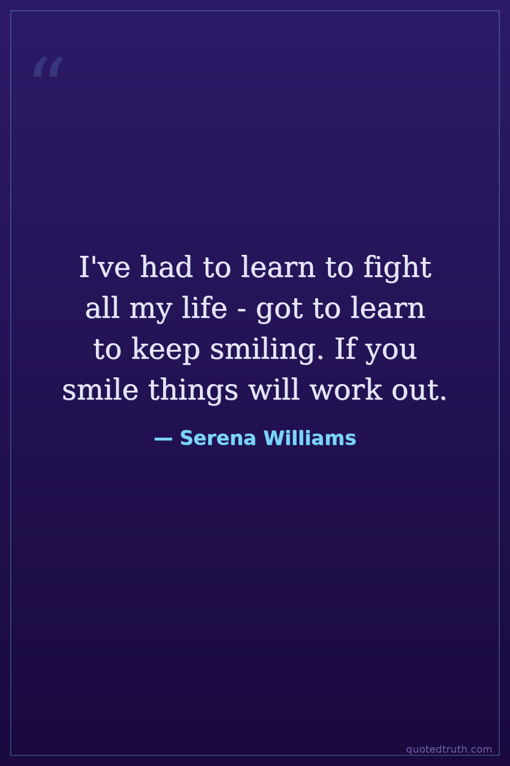 I've had to learn to fight all my life - got to learn to keep smiling. If you smile things will work out.