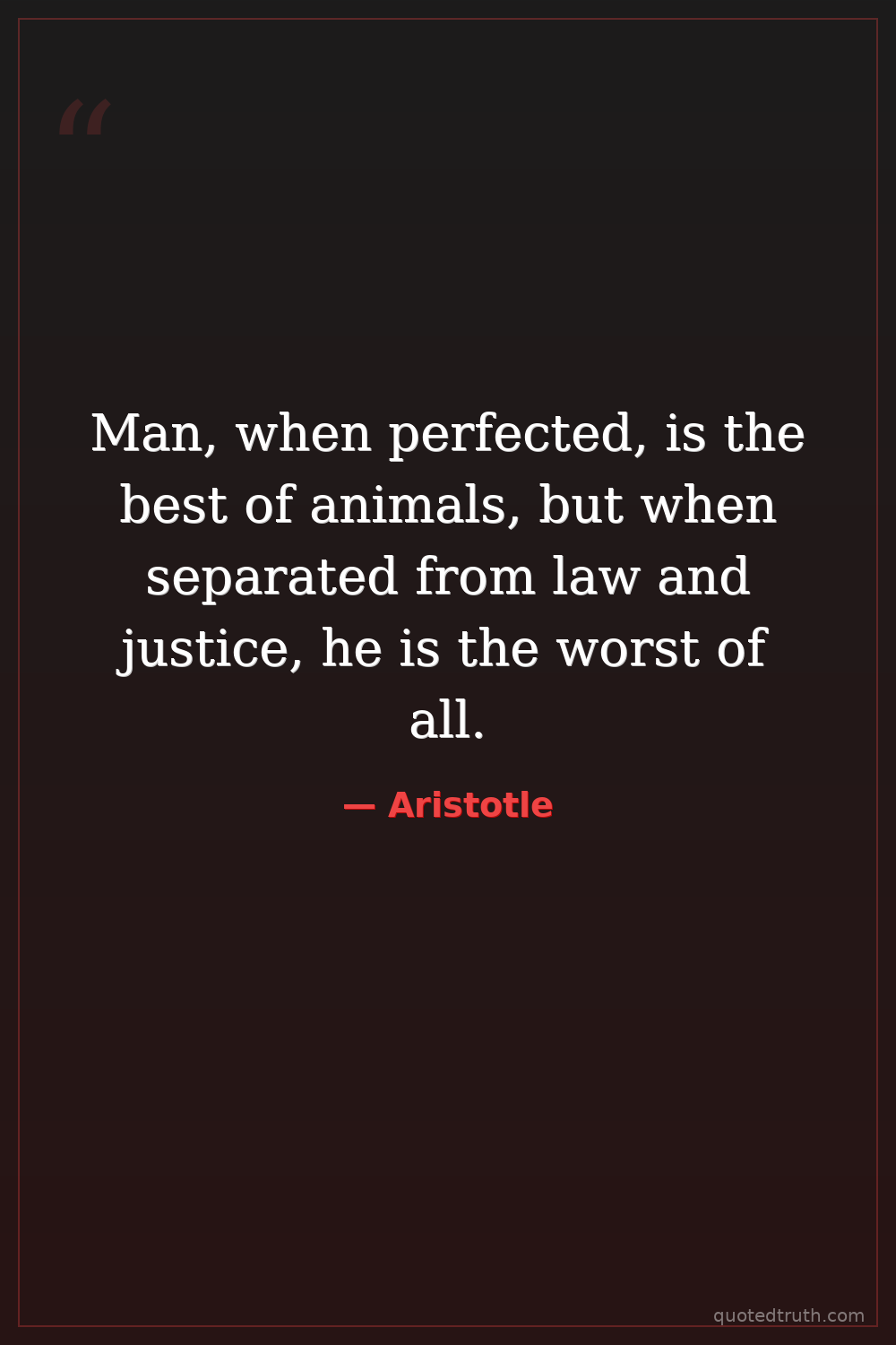 Man, when perfected, is the best of animals, but when separated from law and justice, he is the worst of all.