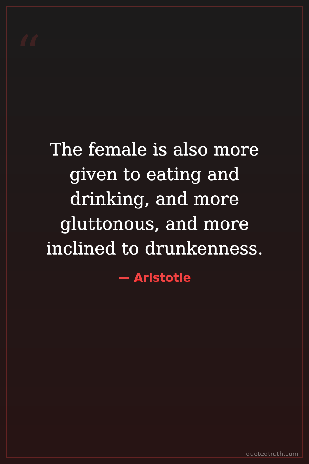 The female is also more given to eating and drinking, and more gluttonous, and more inclined to drunkenness.