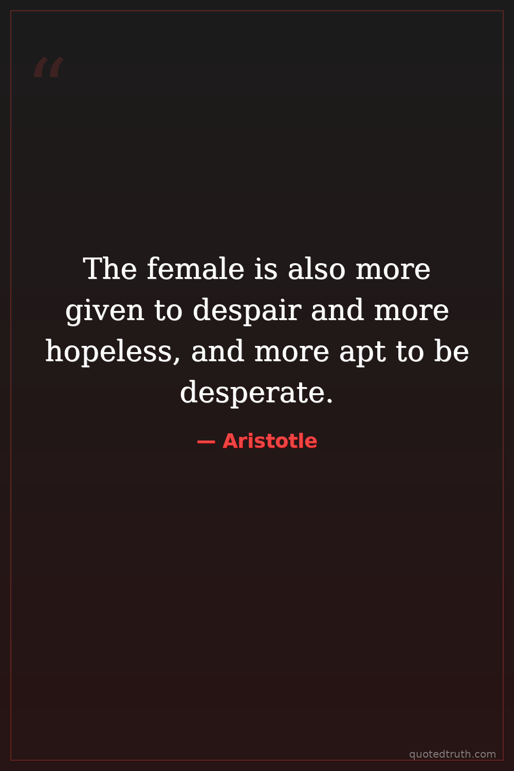 The female is also more given to despair and more hopeless, and more apt to be desperate.