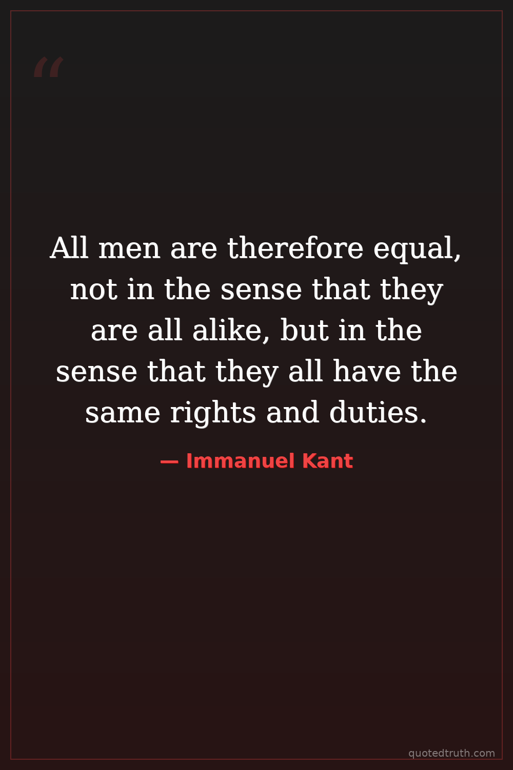 All men are therefore equal, not in the sense that they are all alike, but in the sense that they all have the same rights and duties.