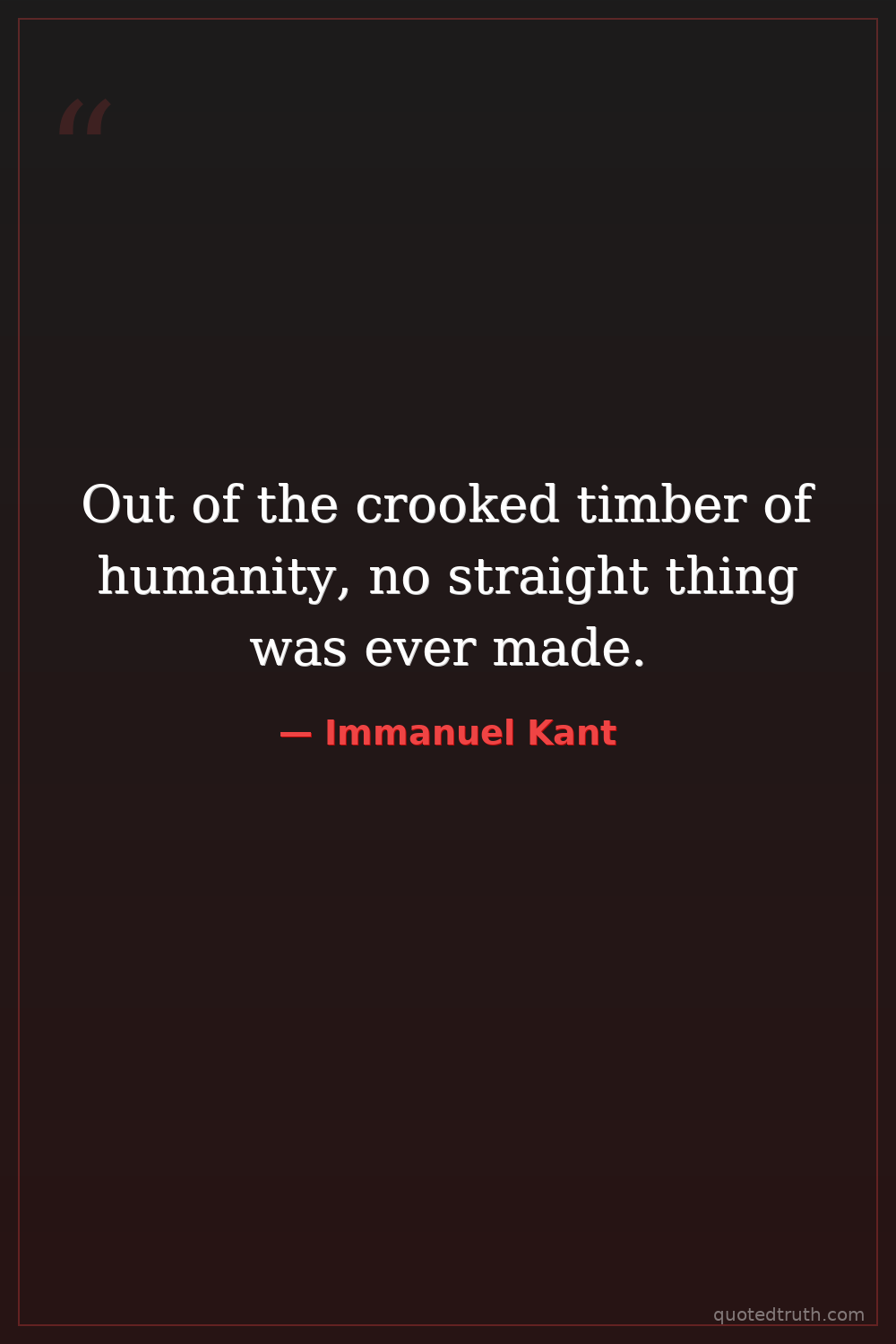 Out of the crooked timber of humanity, no straight thing was ever made.