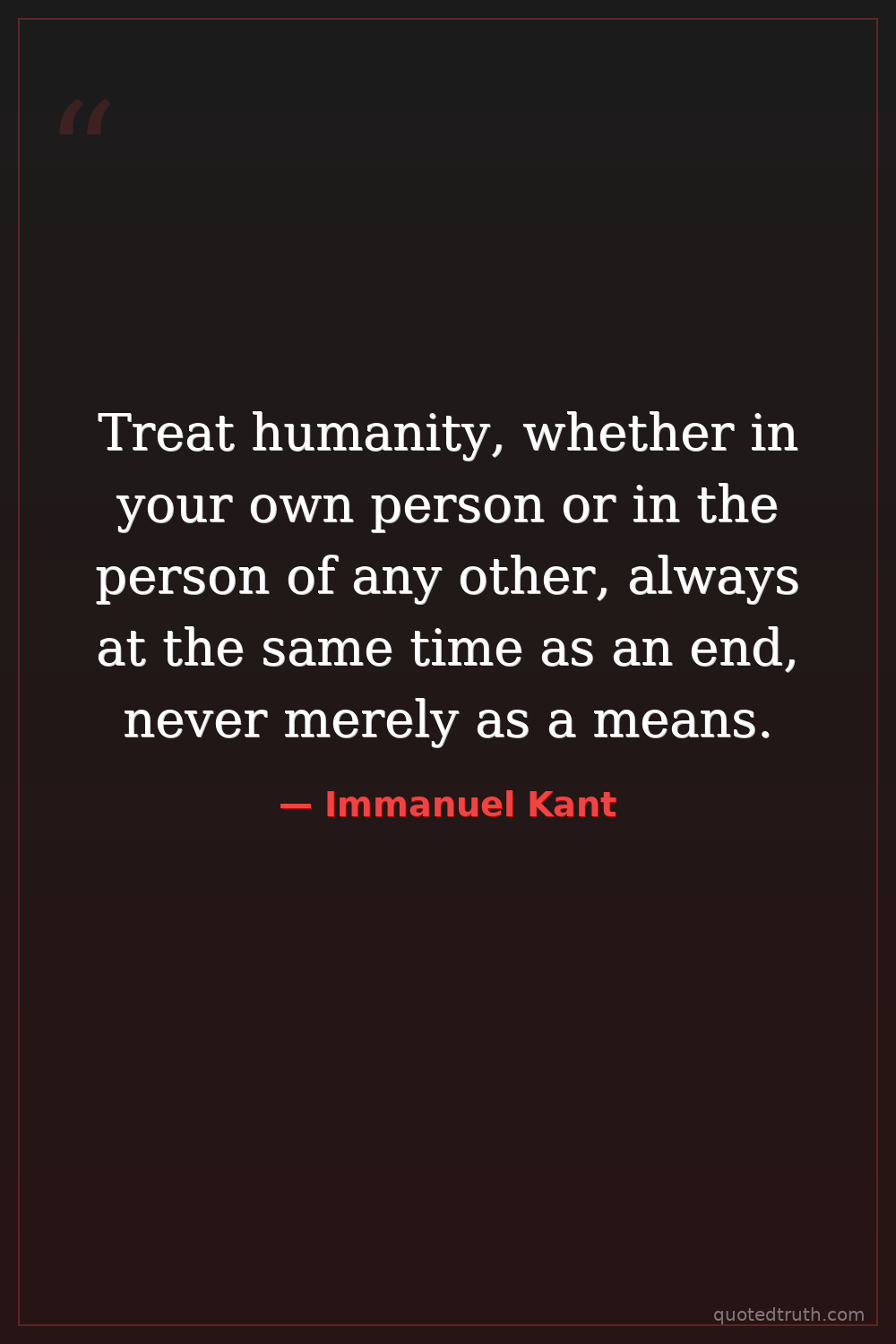 Treat humanity, whether in your own person or in the person of any other, always at the same time as an end, never merely as a means.