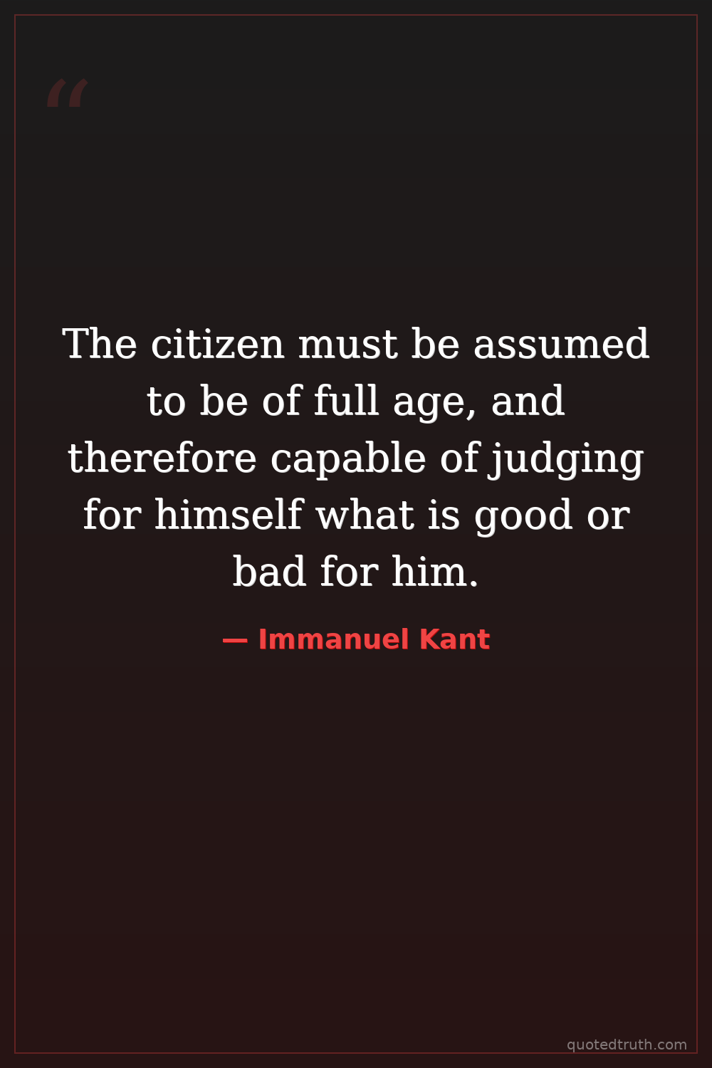 The citizen must be assumed to be of full age, and therefore capable of judging for himself what is good or bad for him.