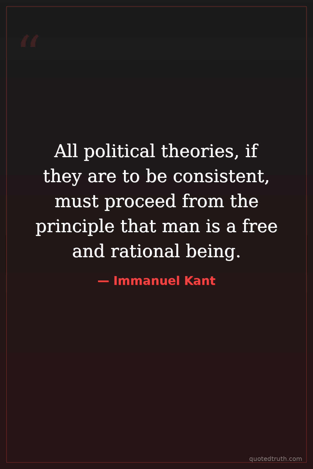 All political theories, if they are to be consistent, must proceed from the principle that man is a free and rational being.