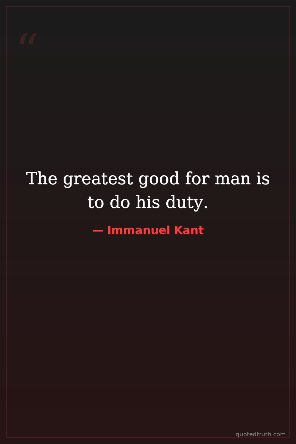 The greatest good for man is to do his duty.