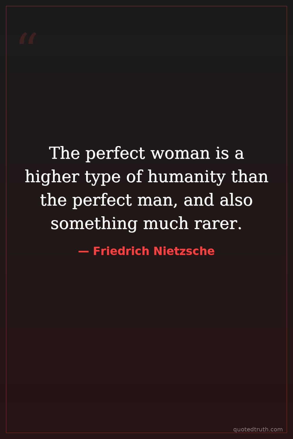 The perfect woman is a higher type of humanity than the perfect man, and also something much rarer.