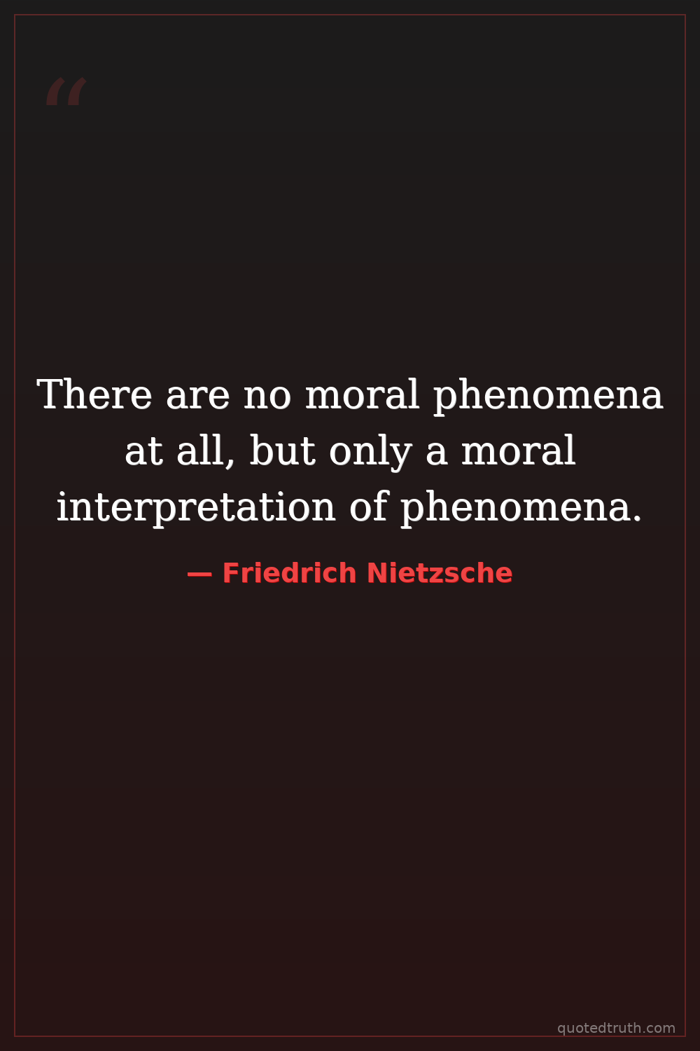There are no moral phenomena at all, but only a moral interpretation of phenomena.