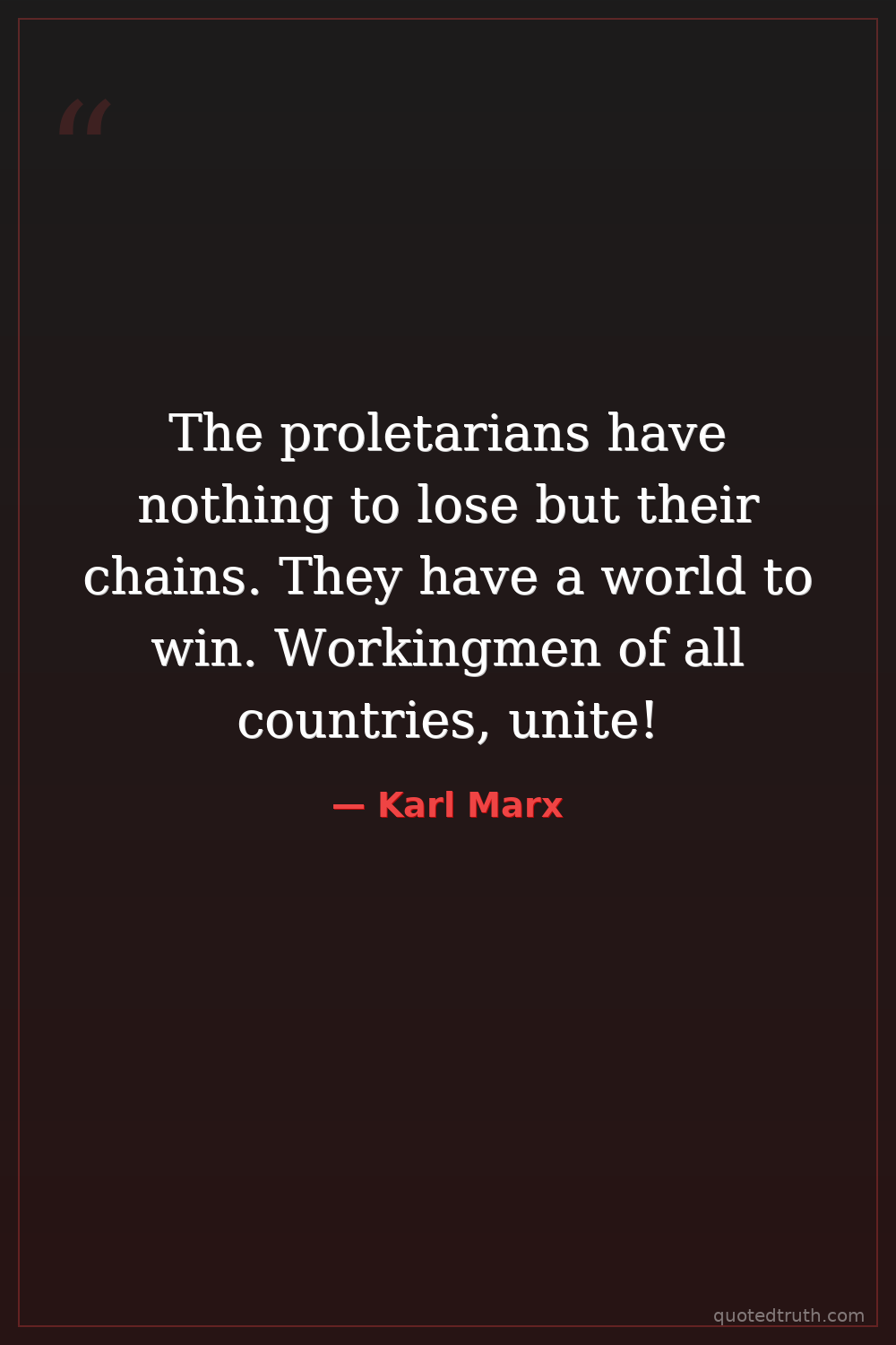 The proletarians have nothing to lose but their chains. They have a world to win. Workingmen of all countries, unite!
