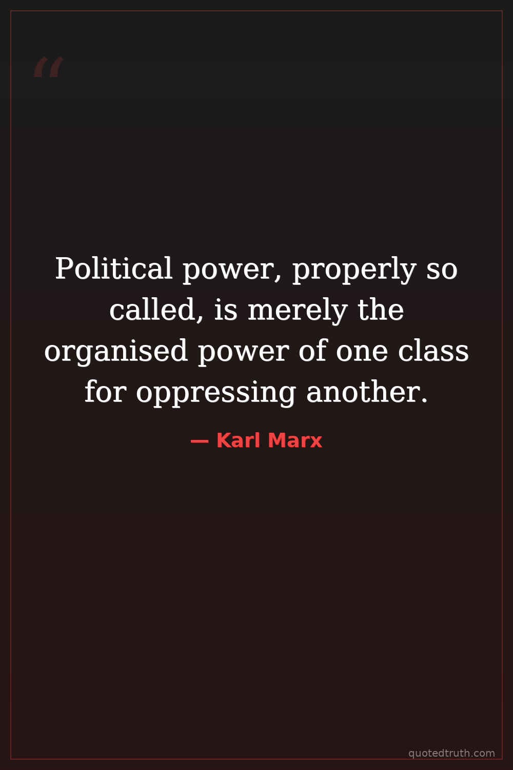 Political power, properly so called, is merely the organised power of one class for oppressing another.