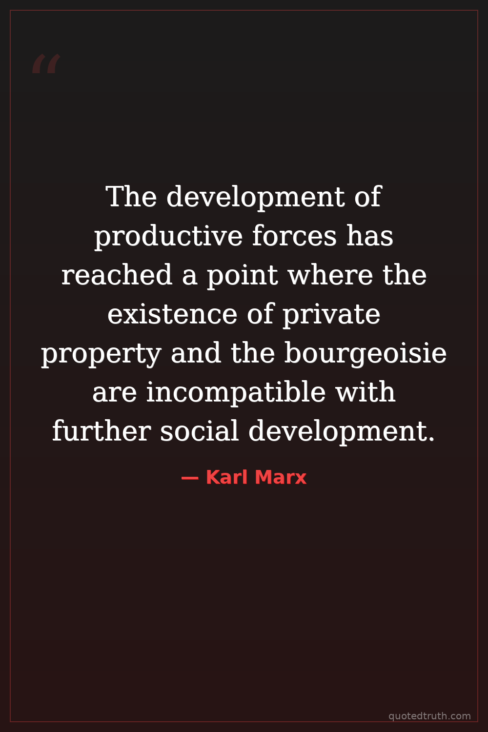 The development of productive forces has reached a point where the existence of private property and the bourgeoisie are incompatible with further social development.