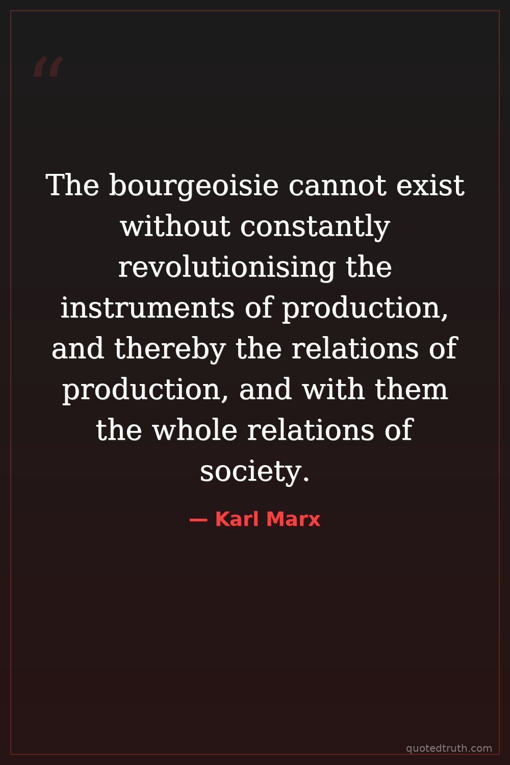 The bourgeoisie cannot exist without constantly revolutionising the instruments of production, and thereby the relations of production, and with them the whole relations of society.