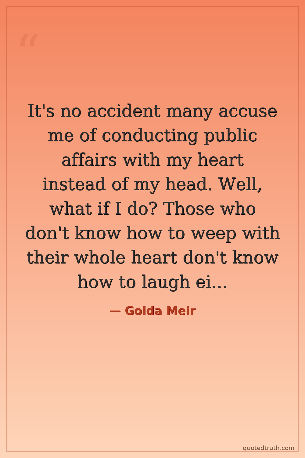 It's no accident many accuse me of conducting public affairs with my heart instead of my head. Well, what if I do? Those who don't know how to weep with their whole heart don't know how to laugh either.