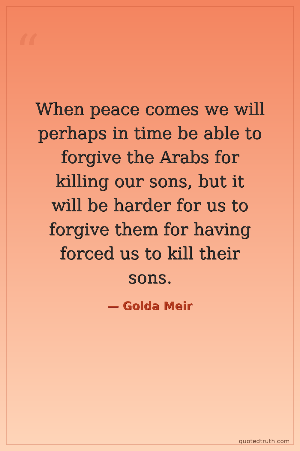 When peace comes we will perhaps in time be able to forgive the Arabs for killing our sons, but it will be harder for us to forgive them for having forced us to kill their sons.