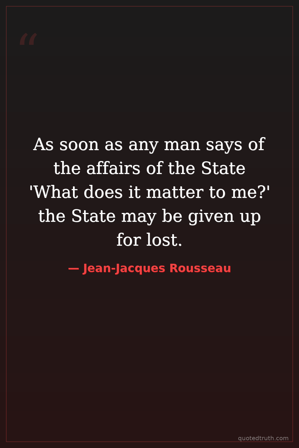 As soon as any man says of the affairs of the State 'What does it matter to me?' the State may be given up for lost.
