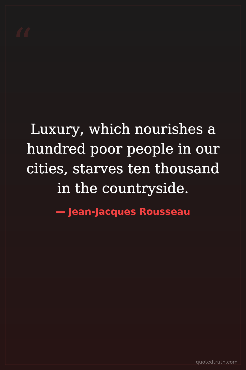 Luxury, which nourishes a hundred poor people in our cities, starves ten thousand in the countryside.