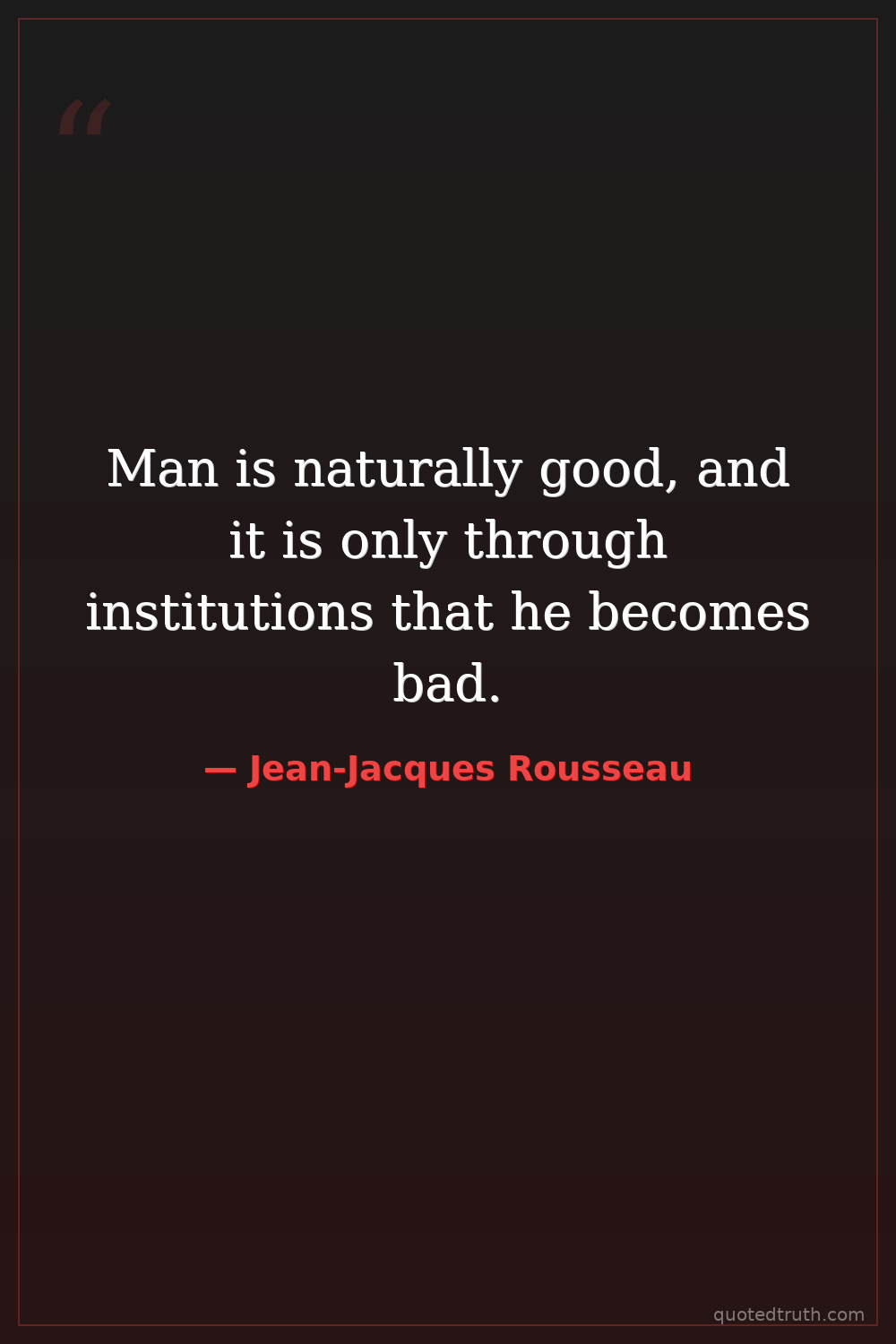 Man is naturally good, and it is only through institutions that he becomes bad.