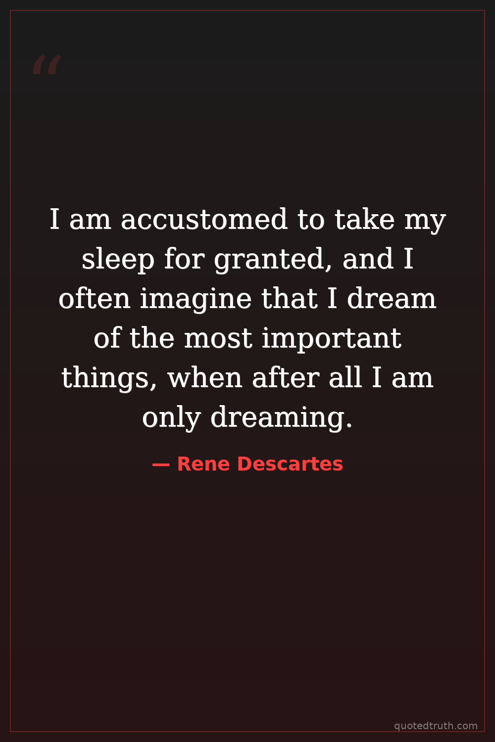 I am accustomed to take my sleep for granted, and I often imagine that I dream of the most important things, when after all I am only dreaming.