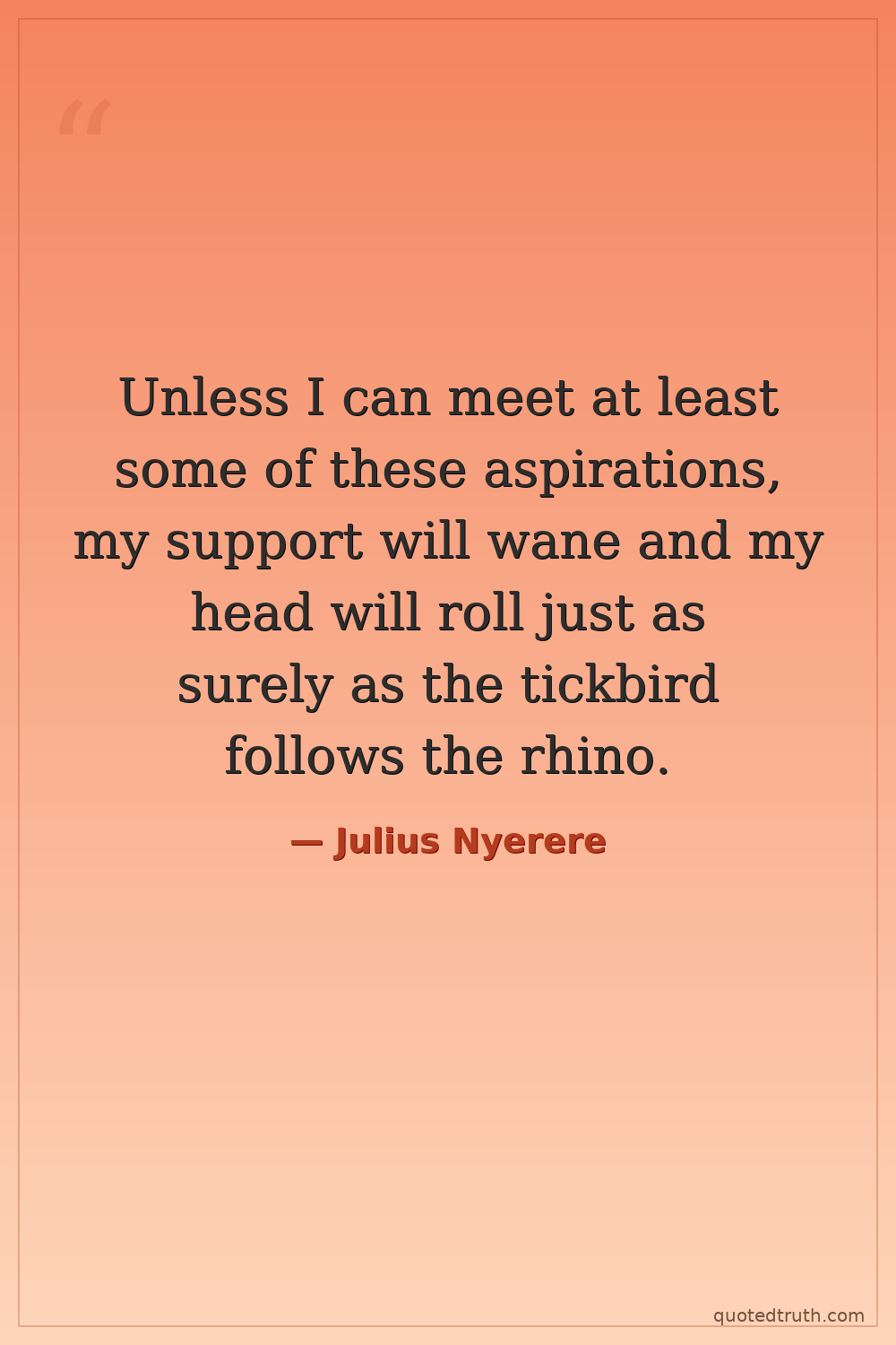 Unless I can meet at least some of these aspirations, my support will wane and my head will roll just as surely as the tickbird follows the rhino.