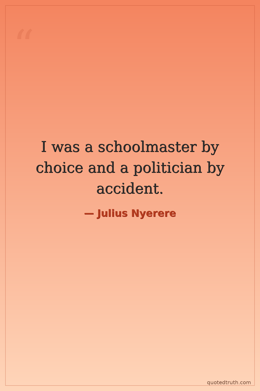 I was a schoolmaster by choice and a politician by accident.