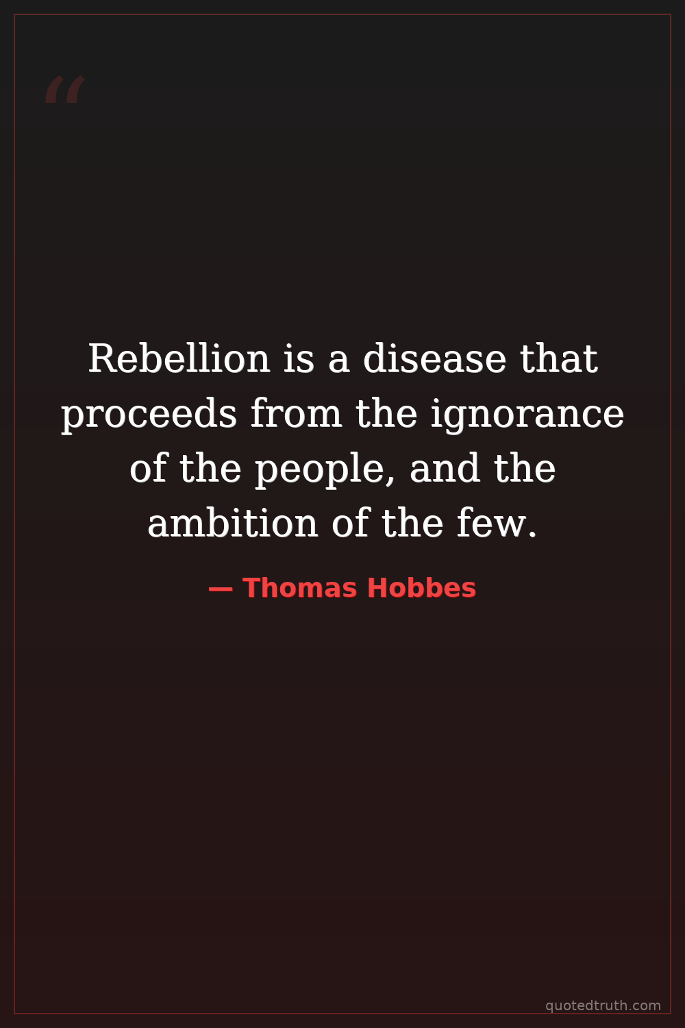 Rebellion is a disease that proceeds from the ignorance of the people, and the ambition of the few.