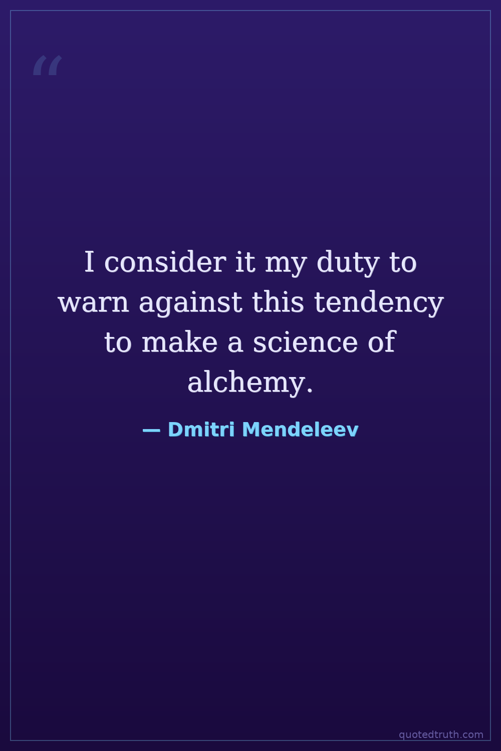 I consider it my duty to warn against this tendency to make a science of alchemy.
