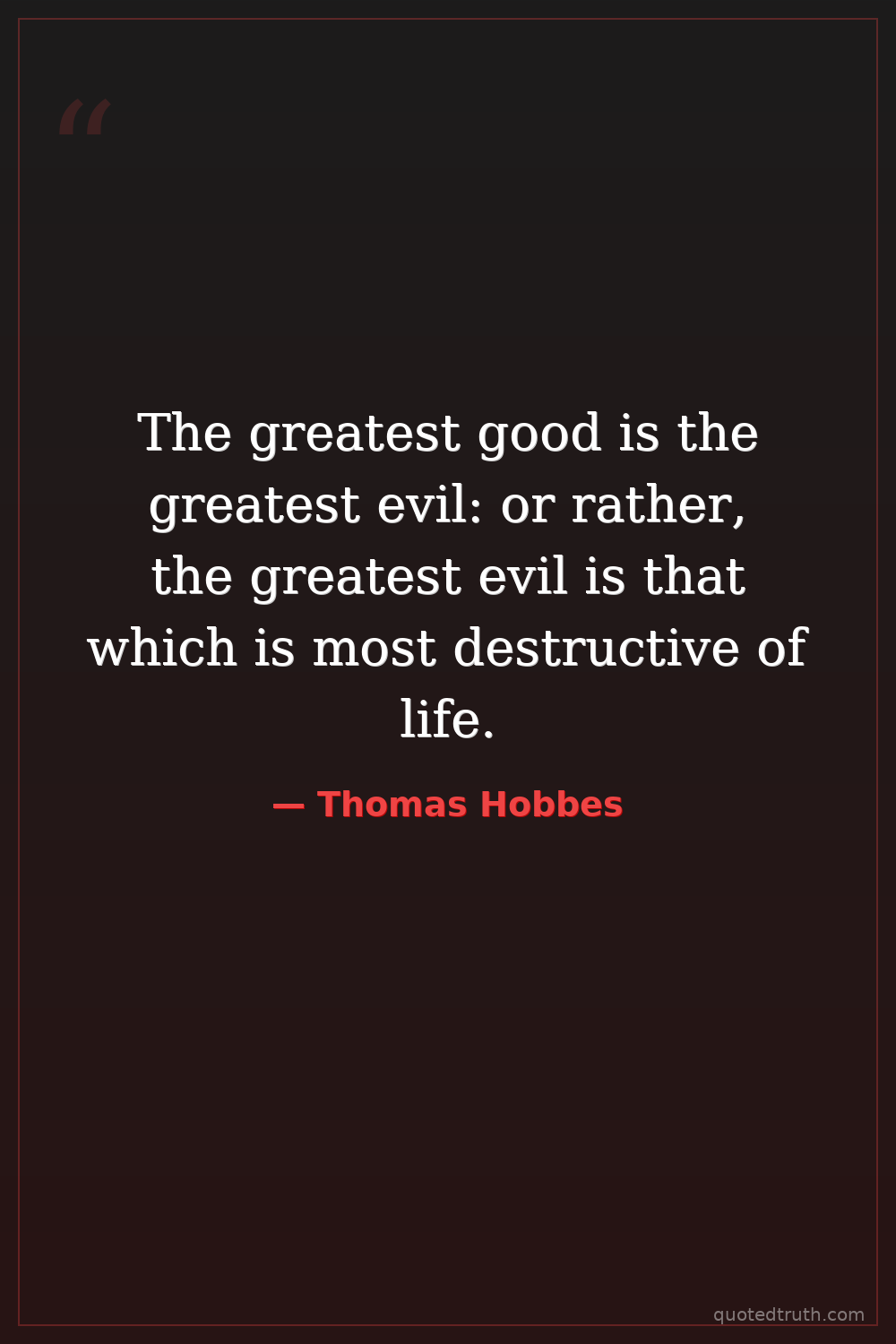 The greatest good is the greatest evil: or rather, the greatest evil is that which is most destructive of life.