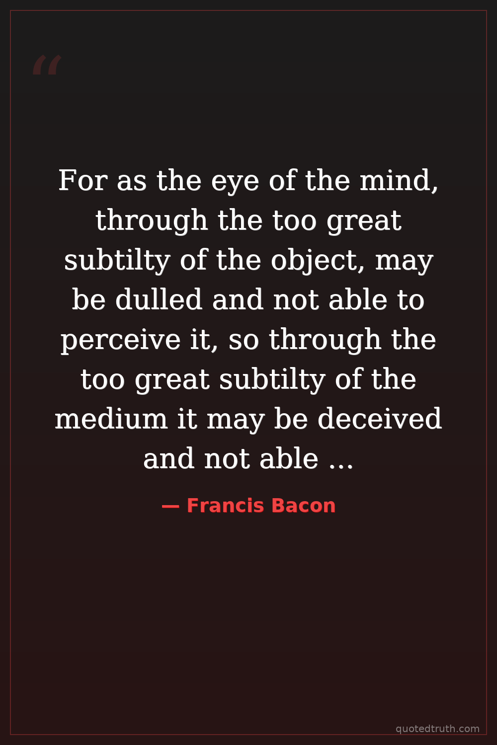 For as the eye of the mind, through the too great subtilty of the object, may be dulled and not able to perceive it, so through the too great subtilty of the medium it may be deceived and not able to judge aright.