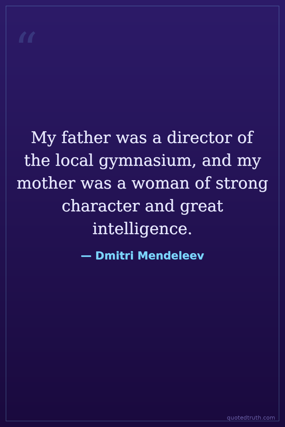 My father was a director of the local gymnasium, and my mother was a woman of strong character and great intelligence.
