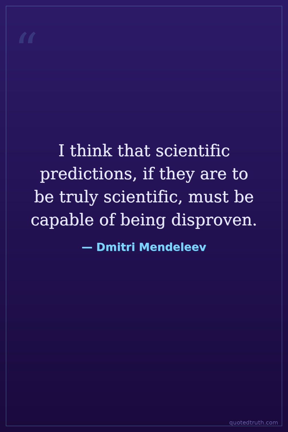 I think that scientific predictions, if they are to be truly scientific, must be capable of being disproven.