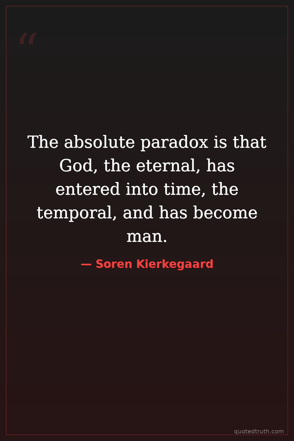 The absolute paradox is that God, the eternal, has entered into time, the temporal, and has become man.