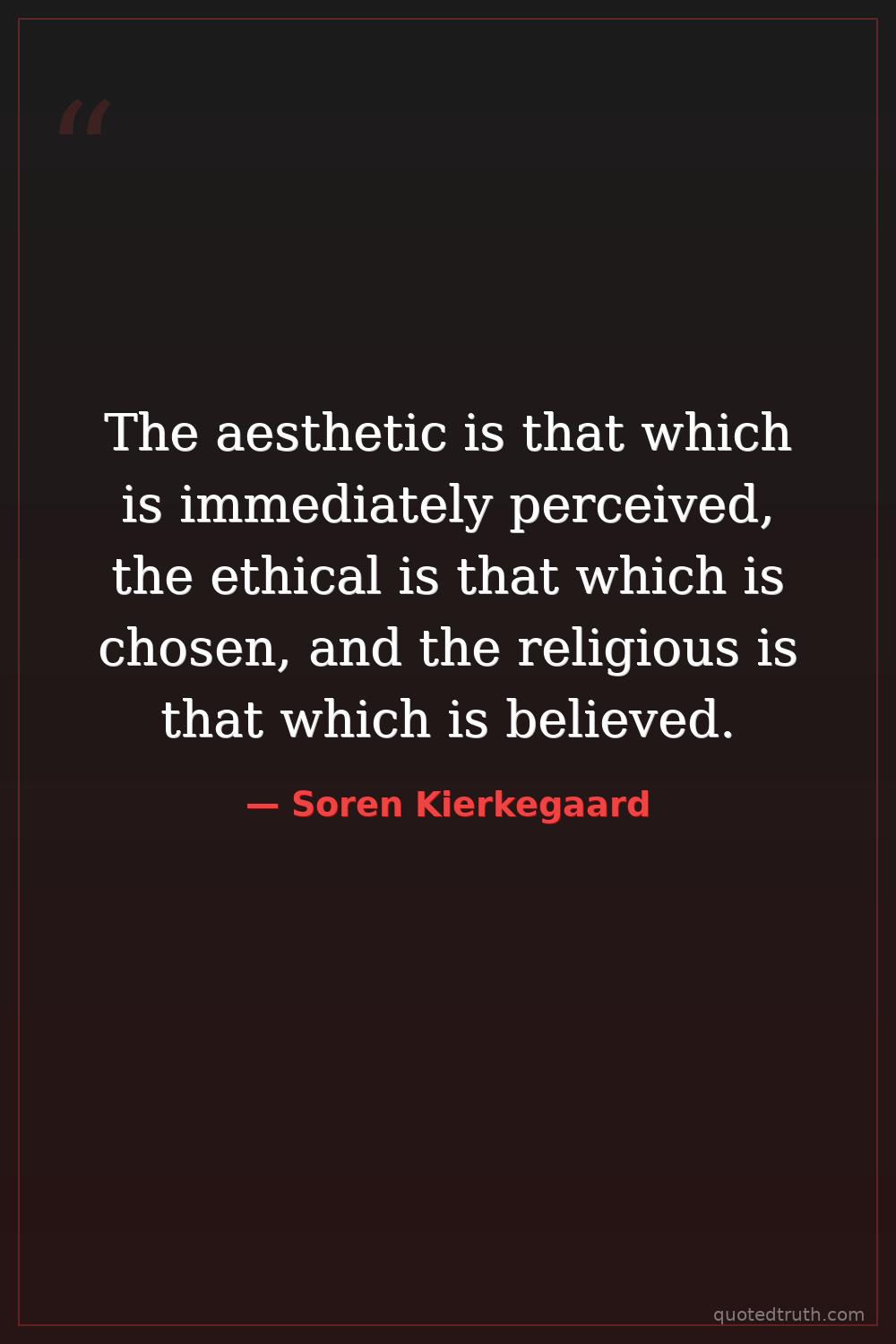 The aesthetic is that which is immediately perceived, the ethical is that which is chosen, and the religious is that which is believed.