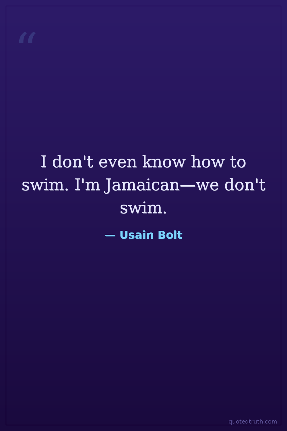 I don't even know how to swim. I'm Jamaican—we don't swim.