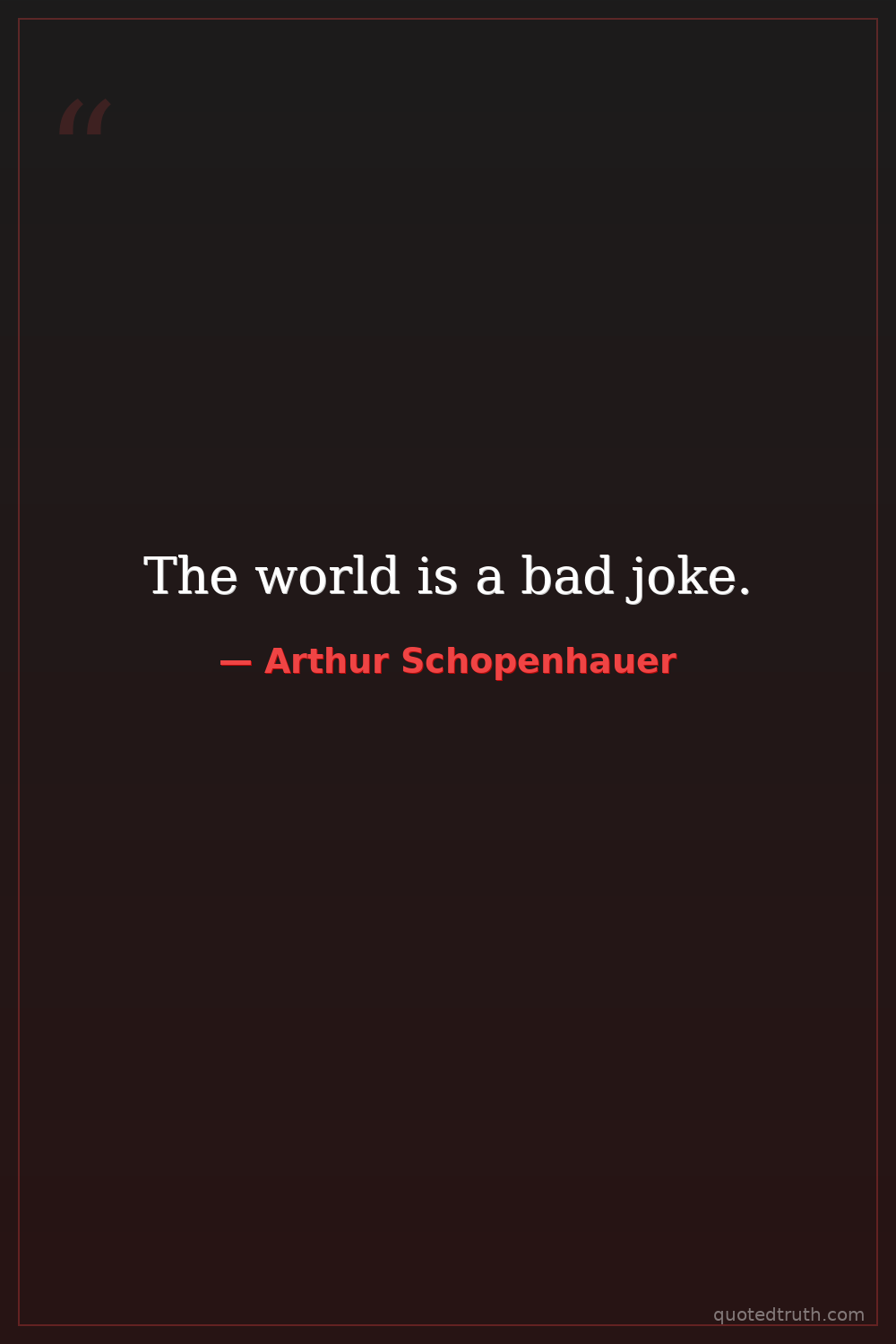 Controversial"Optimism, where it is not merely the thoughtless chatter of fools, is not only a absurd doctrine, but also a truly wicked way of thinking, a bitter mockery of the unspeakable sufferings of humanity."