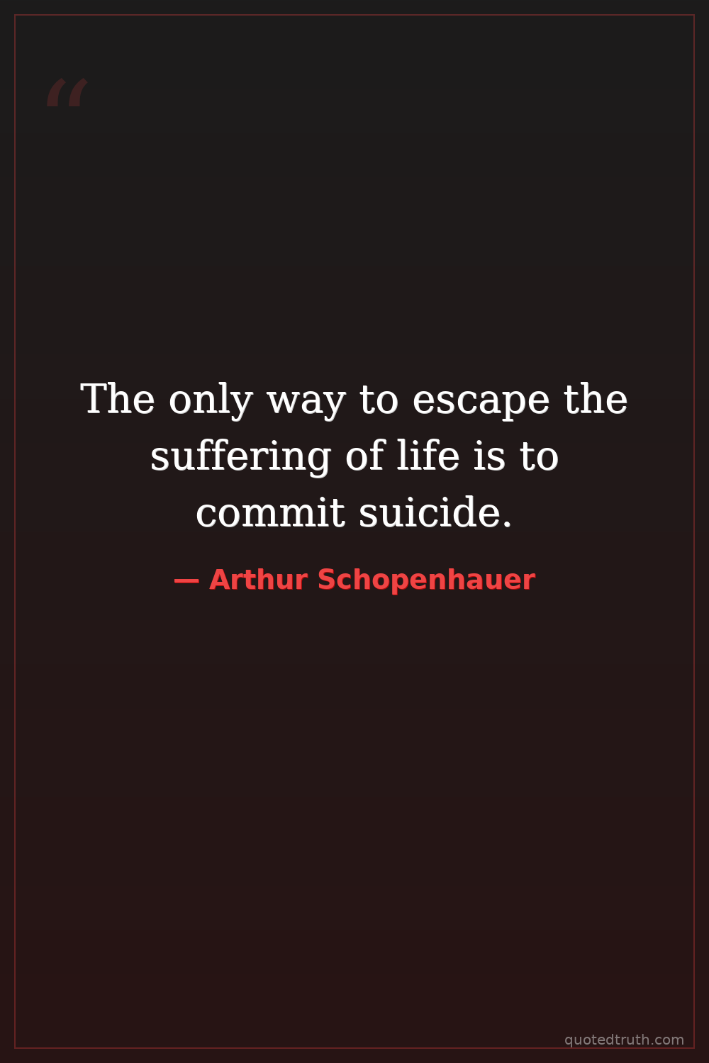 The only way to escape the suffering of life is to commit suicide.