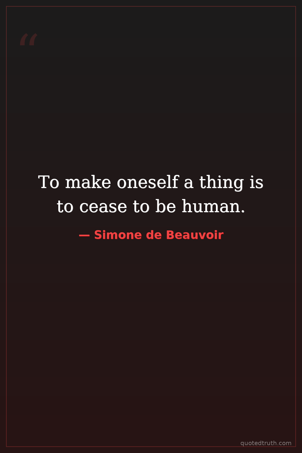 To make oneself a thing is to cease to be human.