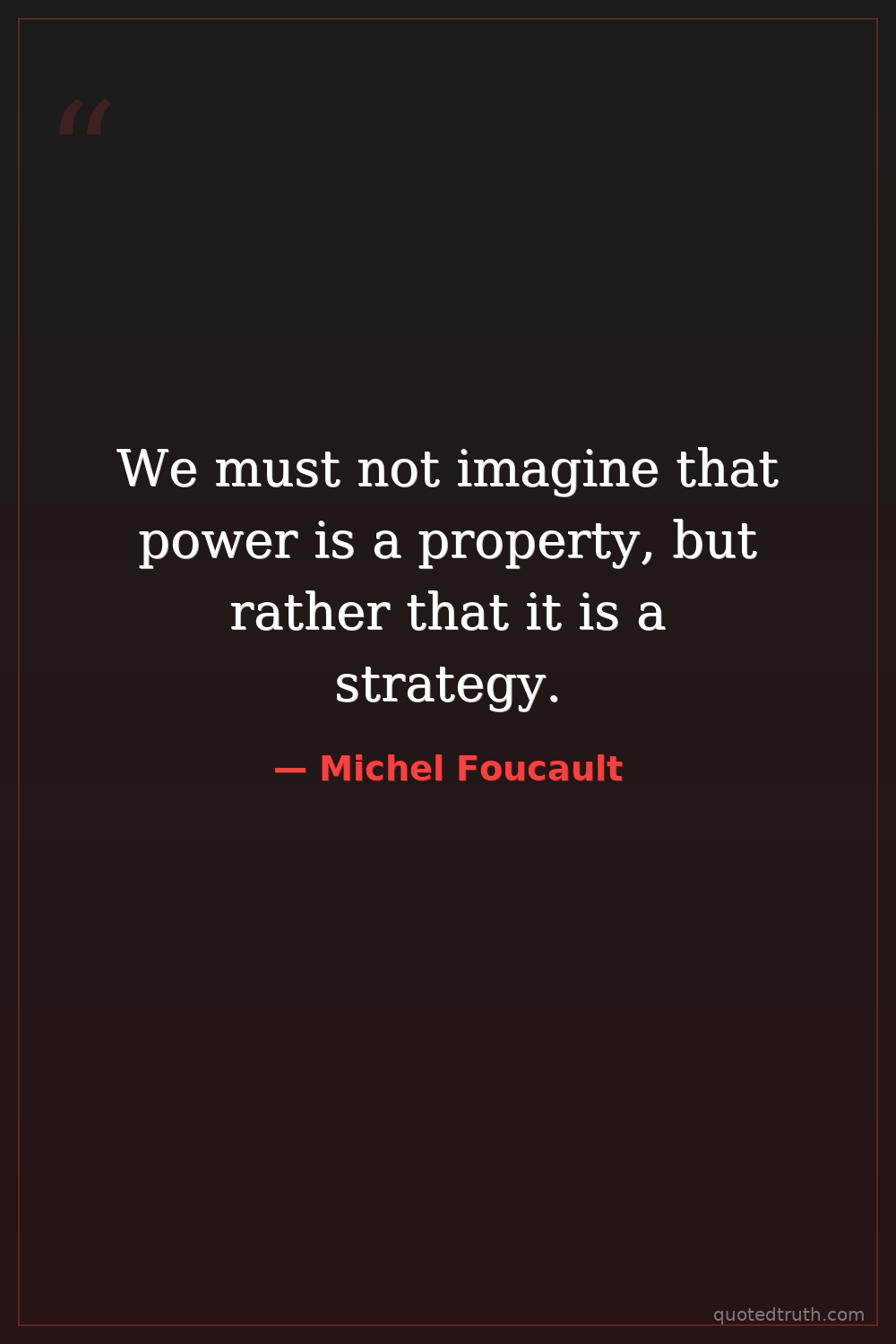 We must not imagine that power is a property, but rather that it is a strategy.