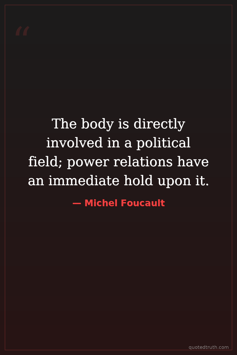 The body is directly involved in a political field; power relations have an immediate hold upon it.