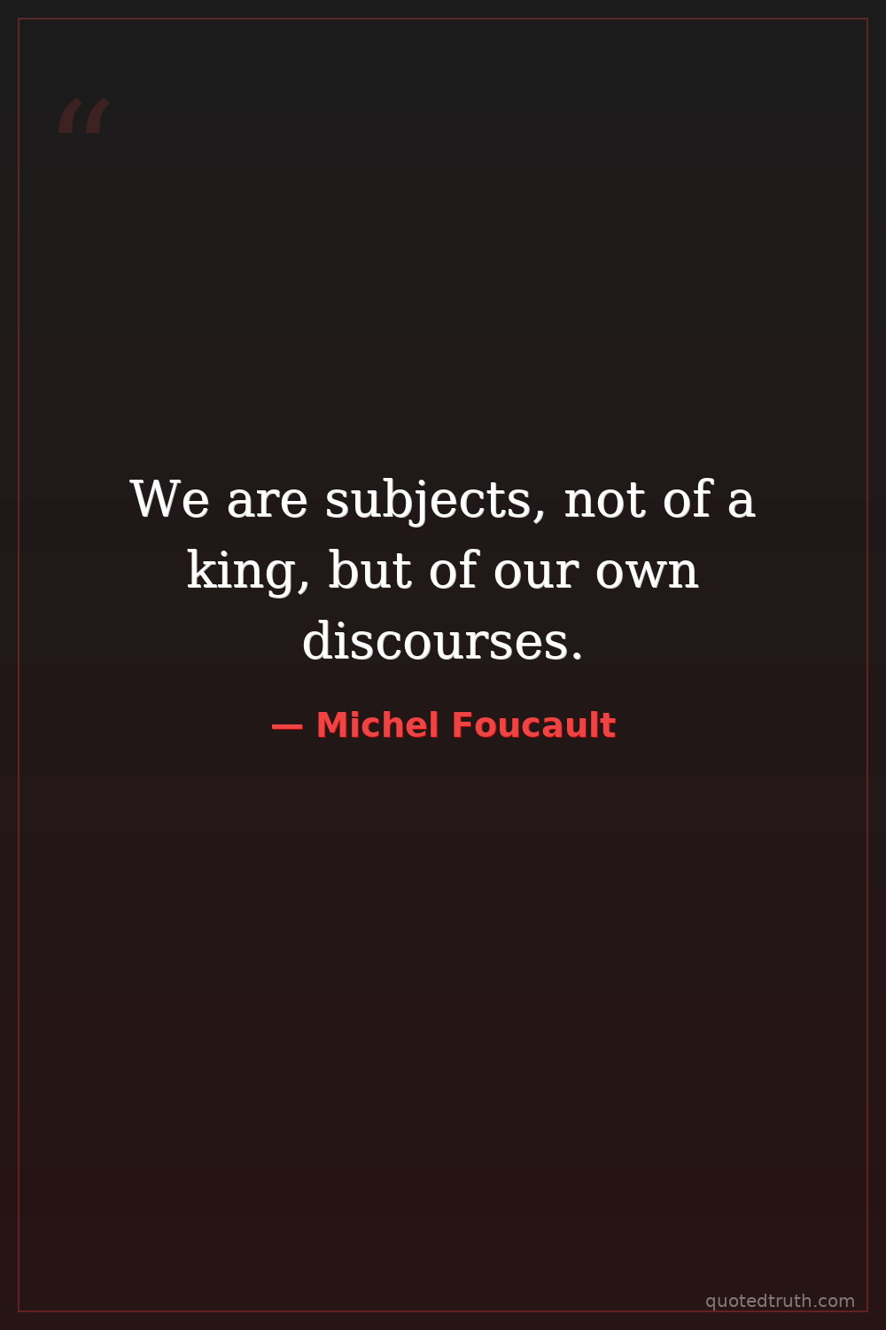 We are subjects, not of a king, but of our own discourses.