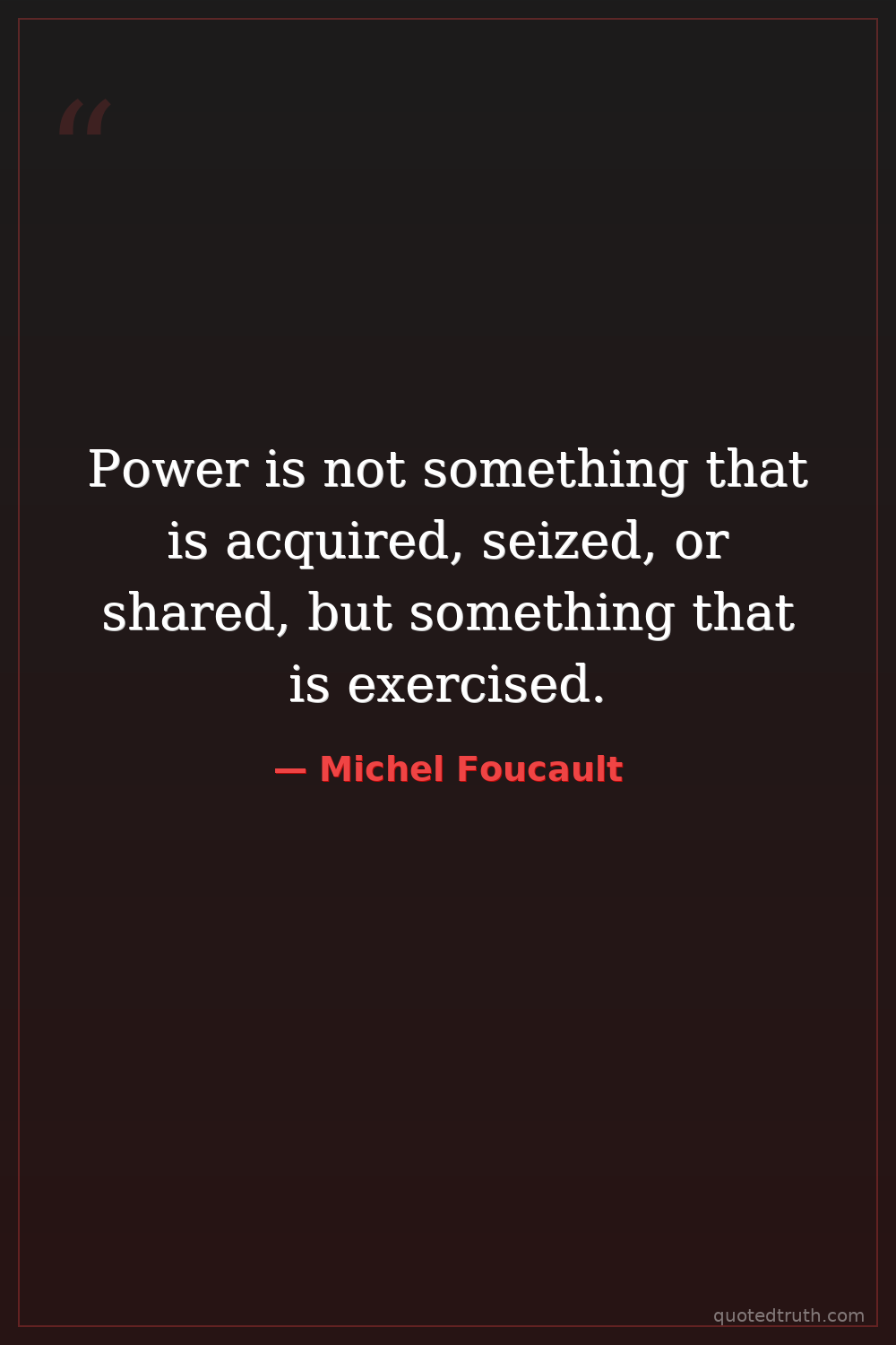 Power is not something that is acquired, seized, or shared, but something that is exercised.
