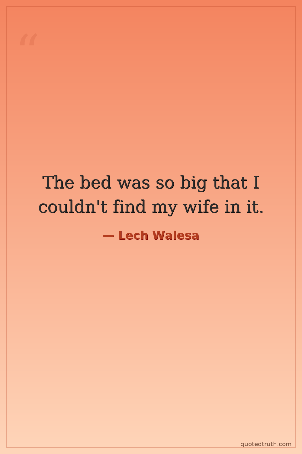 The bed was so big that I couldn't find my wife in it.