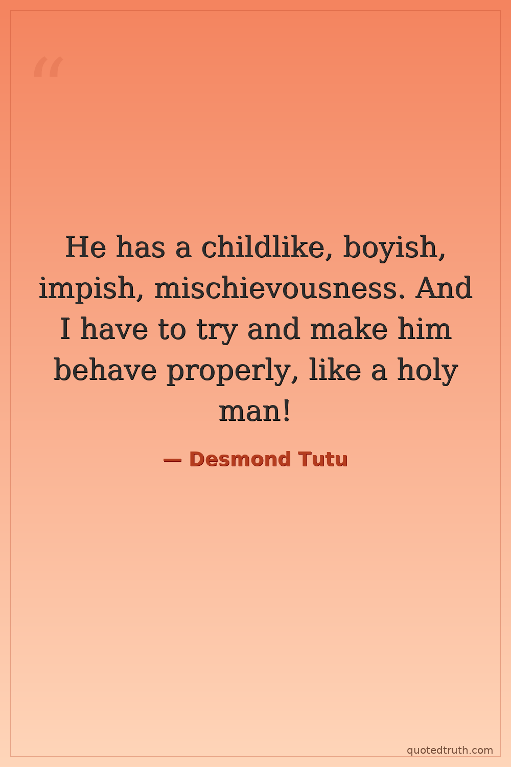 He has a childlike, boyish, impish, mischievousness. And I have to try and make him behave properly, like a holy man!