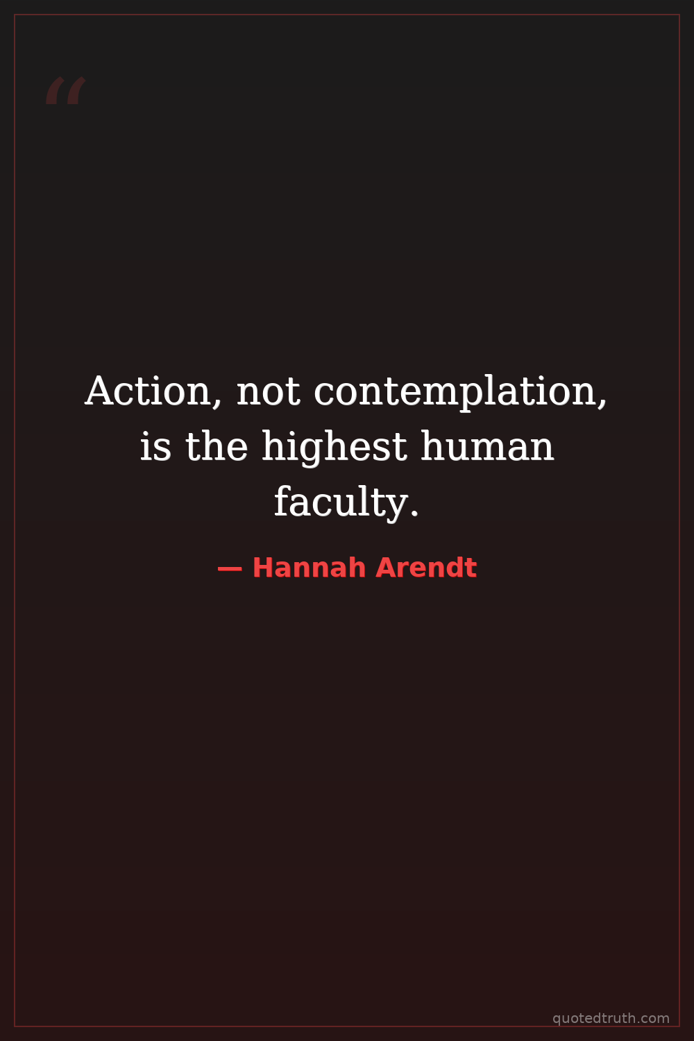 Action, not contemplation, is the highest human faculty.