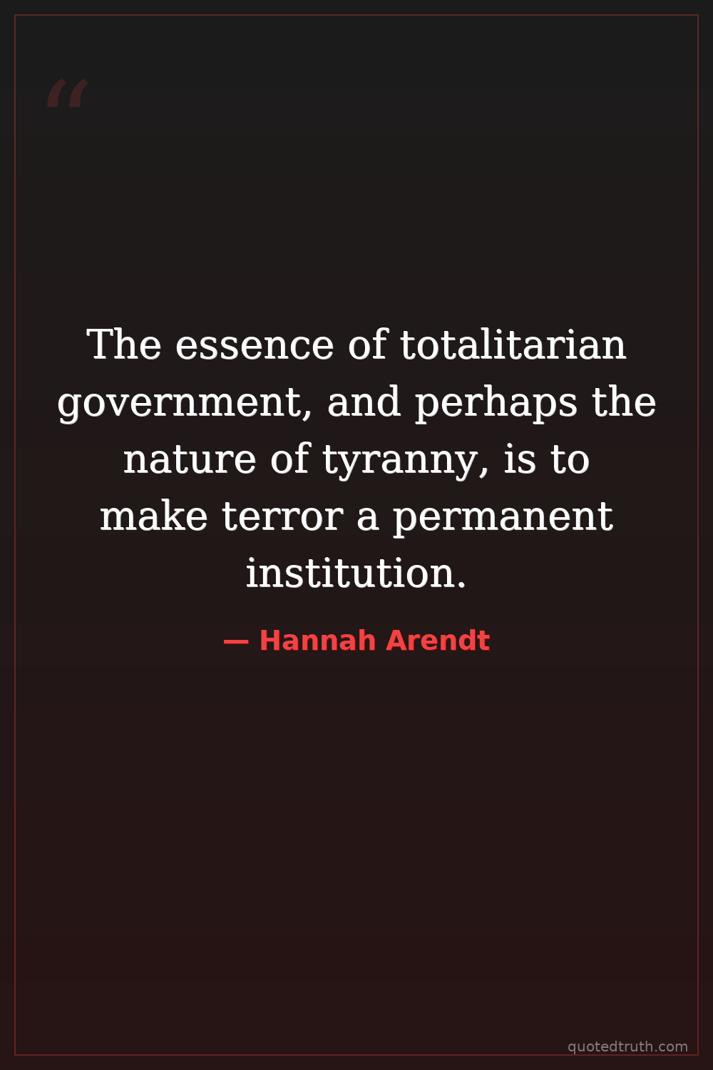 The essence of totalitarian government, and perhaps the nature of tyranny, is to make terror a permanent institution.