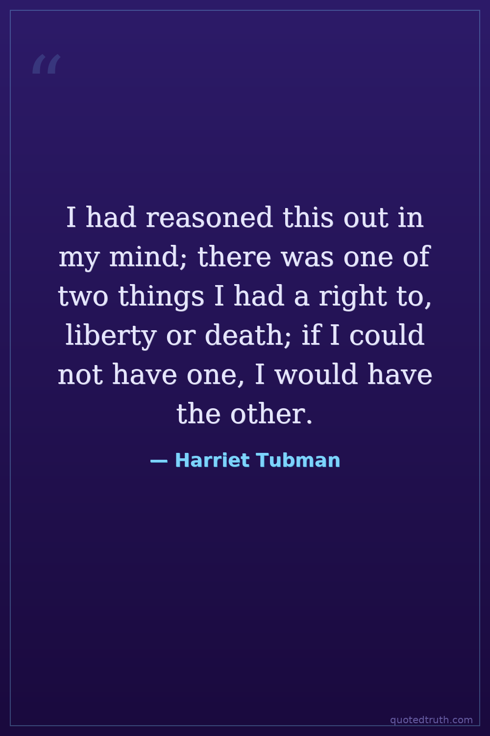 I had reasoned this out in my mind; there was one of two things I had a right to, liberty or death; if I could not have one, I would have the other.