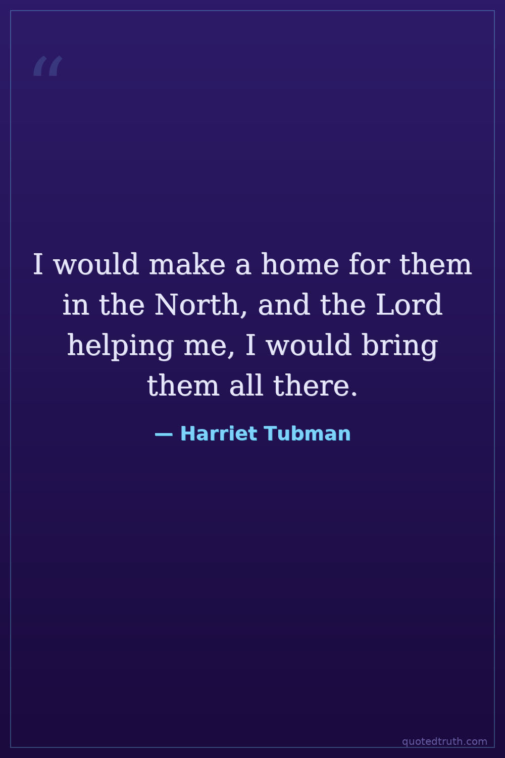 I would make a home for them in the North, and the Lord helping me, I would bring them all there.