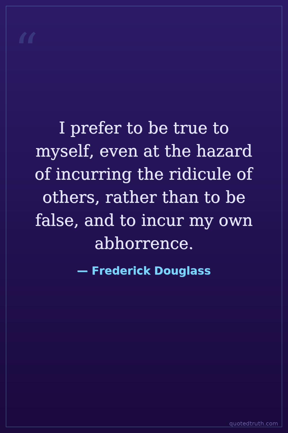 I prefer to be true to myself, even at the hazard of incurring the ridicule of others, rather than to be false, and to incur my own abhorrence.