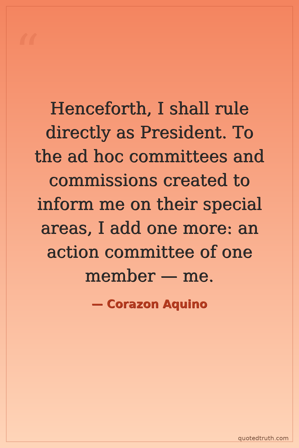 Henceforth, I shall rule directly as President. To the ad hoc committees and commissions created to inform me on their special areas, I add one more: an action committee of one member — me.