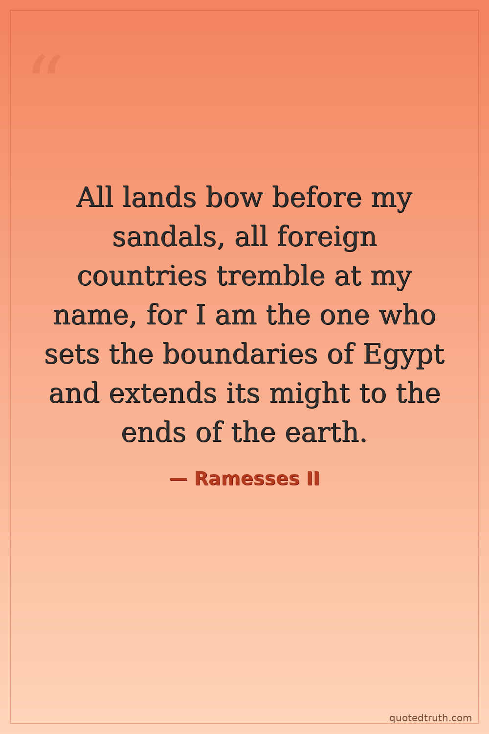 All lands bow before my sandals, all foreign countries tremble at my name, for I am the one who sets the boundaries of Egypt and extends its might to the ends of the earth.